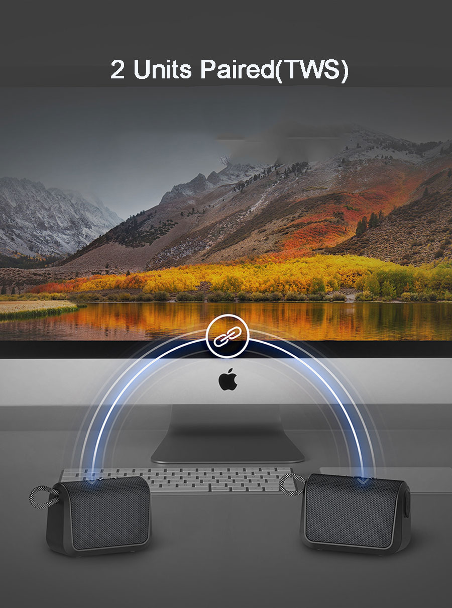 【Ασύρματη στερεοφωνική σύζευξη】 Δύο ασύρματα ηχεία μπορούν να αντιστοιχιστούν σε 2 δευτερόλεπτα, γεγονός που σας επιτρέπει να απολαμβάνετε την ίδια στερεοφωνική μουσική με τους φίλους ή την οικογένειά σας.